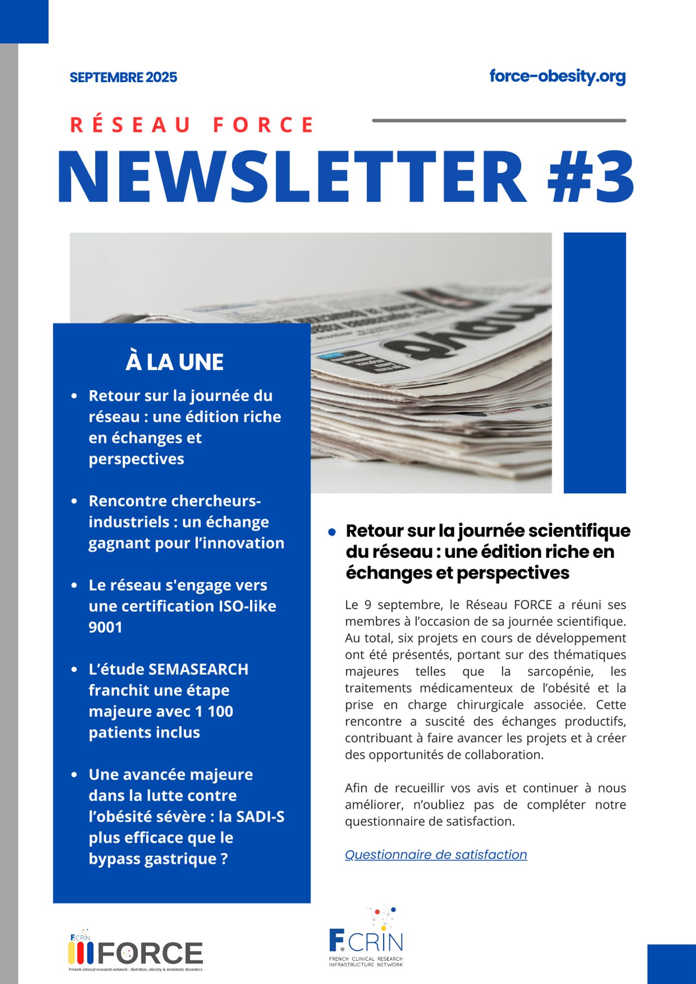 FORCE (French Obesity Research Centre of Excellence) est le réseau national de recherche clinique spécialisé dans l’étude des obésités et des maladies métaboliques associées. L’objectif principal est de développer la recherche clinique afin d’améliorer les stratégies préventives et thérapeutiques dans le domaine de l’Obésité et des pathologies associées.