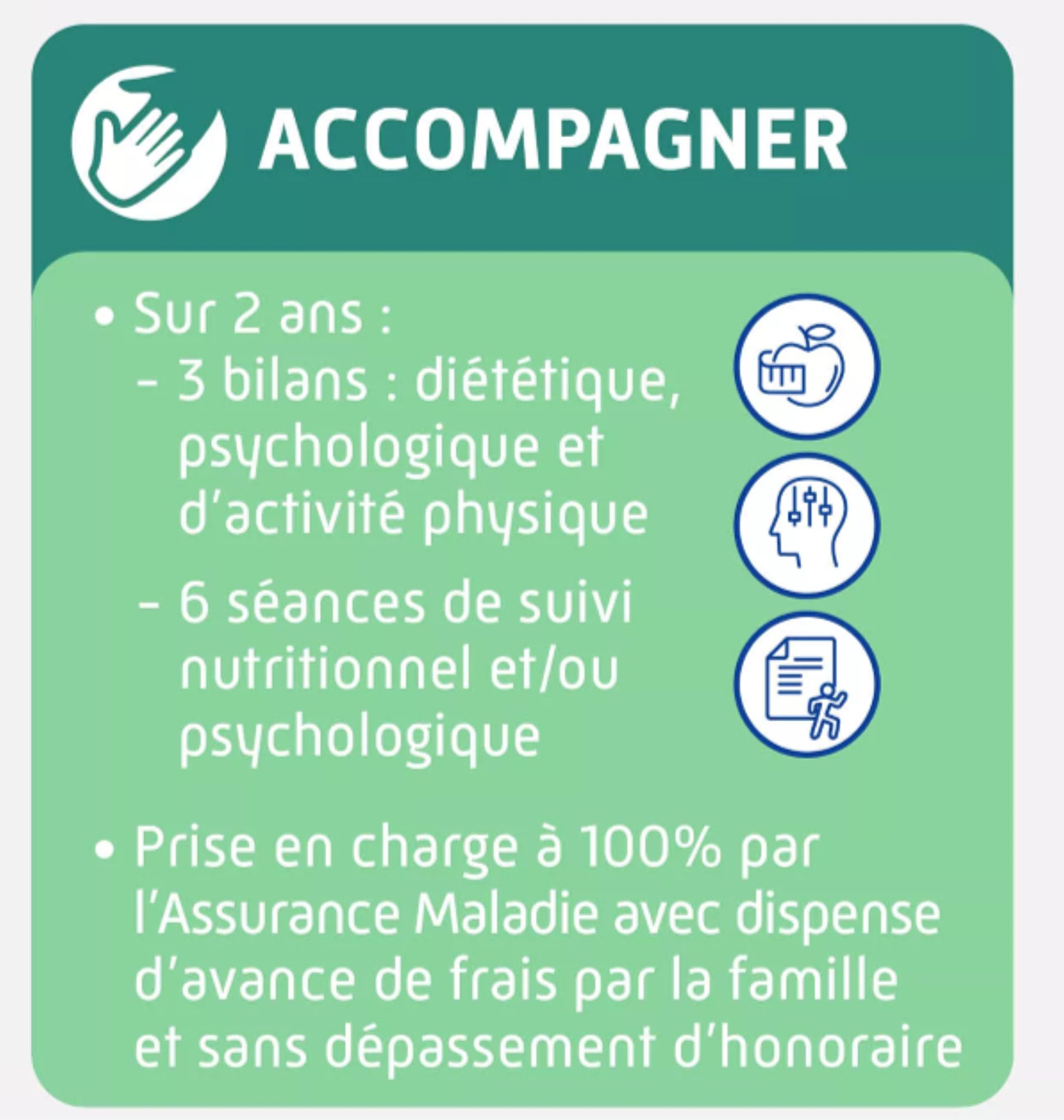 Le programme « Mission : retrouve ton cap » permet aux enfants de 3 à 12 ans en surpoids ou à risque de le devenir, de bénéficier d’une prise en charge précoce et pluridisciplinaire (diététique, psychologique, activité physique). Cette prise en charge est remboursée à 100 % par l’Assurance Maladie sans avance de frais par la famille, ni de dépassement d’honoraire.