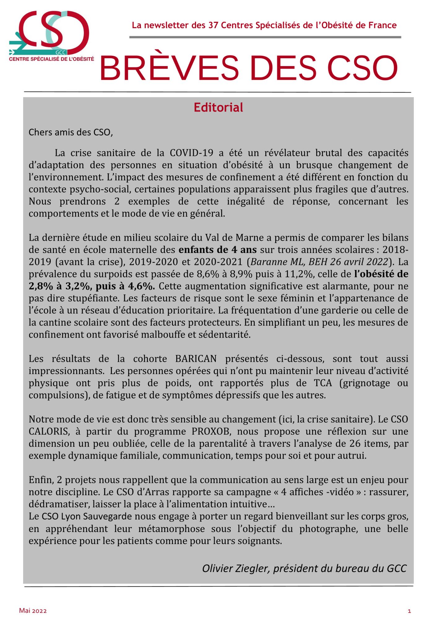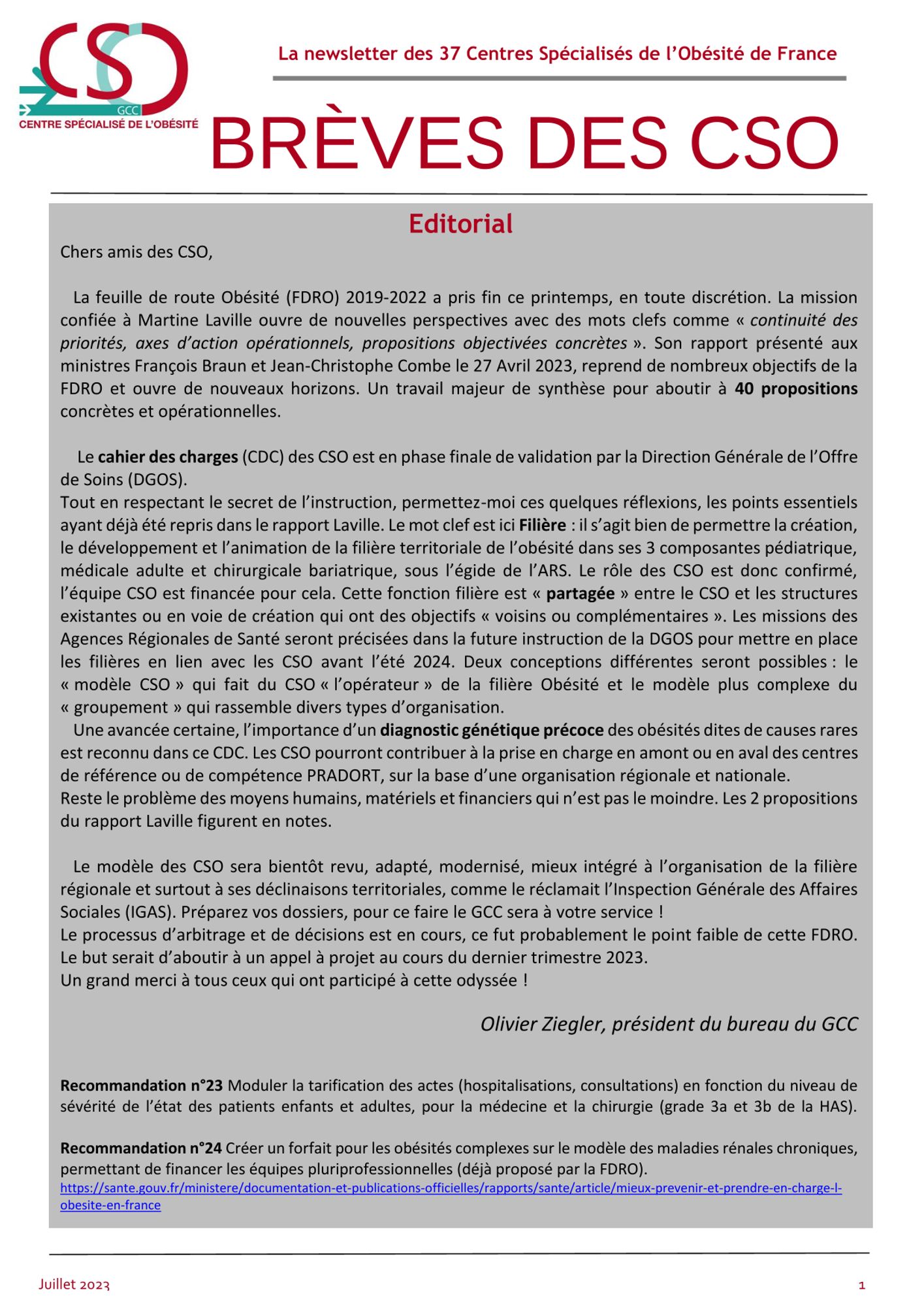 Newsletter S'abonner à la newsletter des Brèves des CSO : Newsletter de mars 2026 version numérique Retrouvez nos précédentes lettres (avant mars 2026, version PDF) Juillet 2025 (1.8 Mo) Mai 2024 (1.6 Mo) Juillet 2023 (1.4 Mo) Mai 2022 (787.3 Ko) Mai 2021 (519.1 Ko)